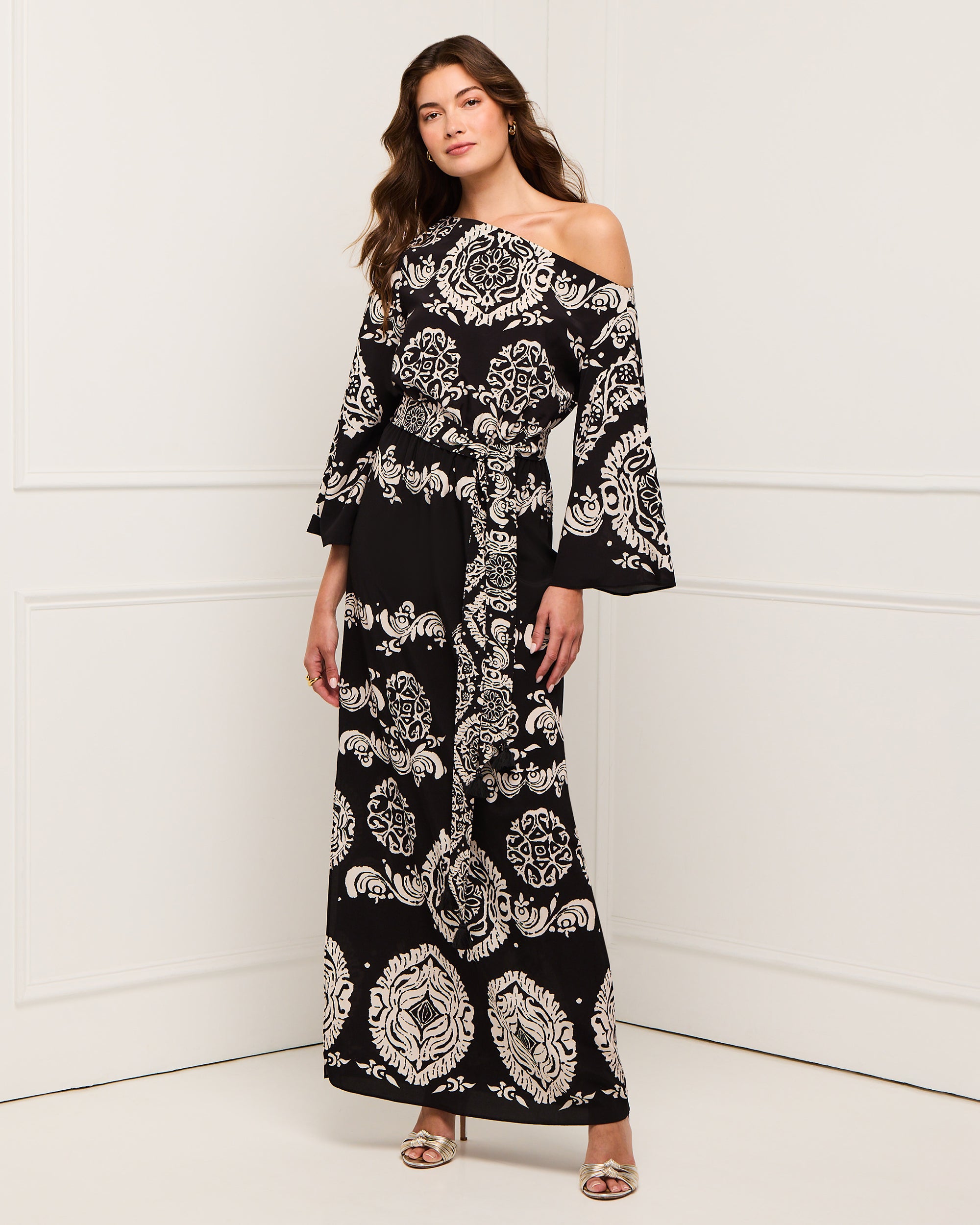 - One-shoulder neckline