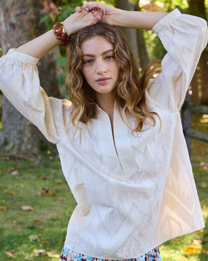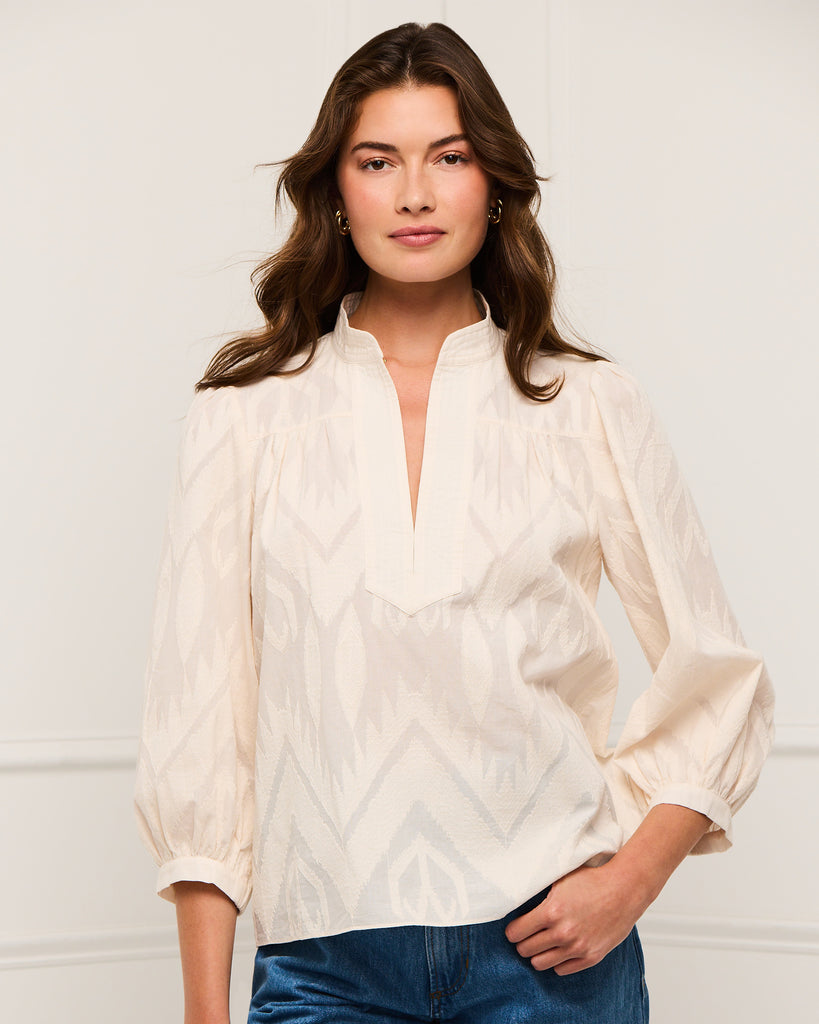 - Band collar with trapunto stitch detailing