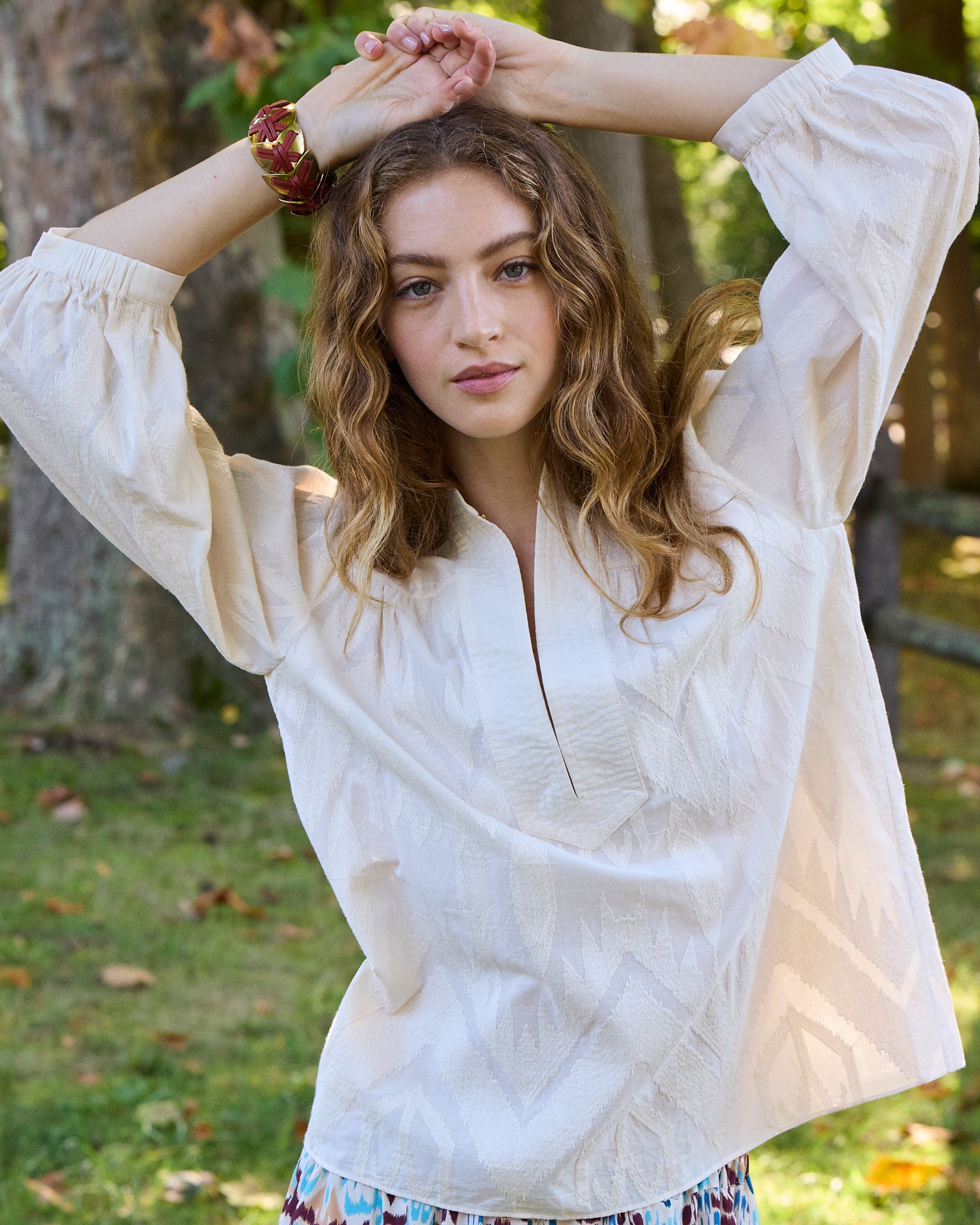 - Bracelet length sleeves with self-covered button cuffs