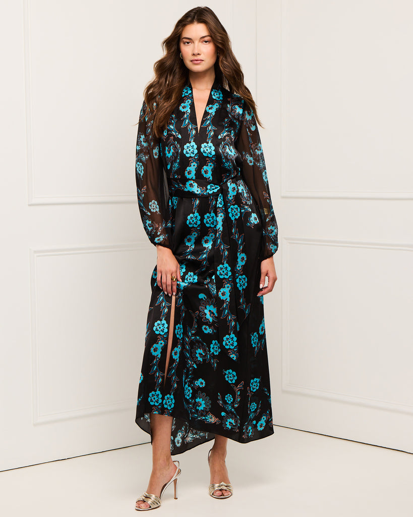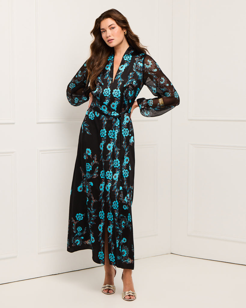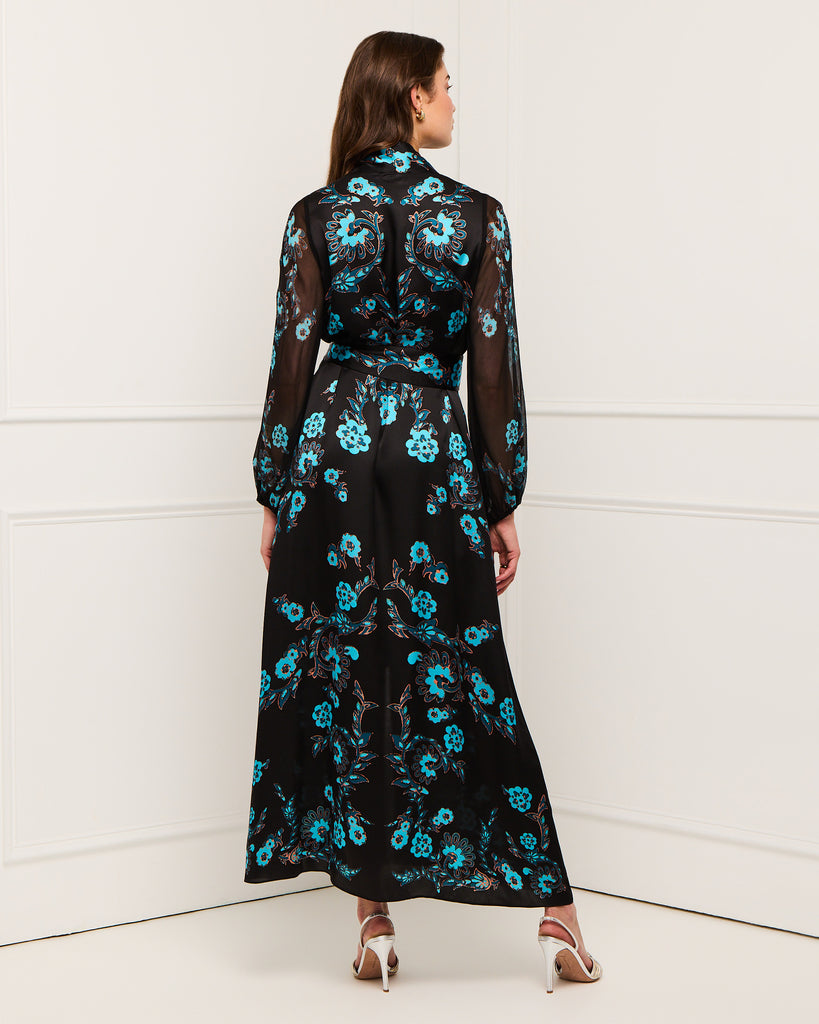 - Sheer chiffon bishop sleeves with elastic cuffs